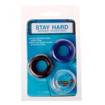 • Pack de tres anillos para el pene -cockrings- de larga duración.